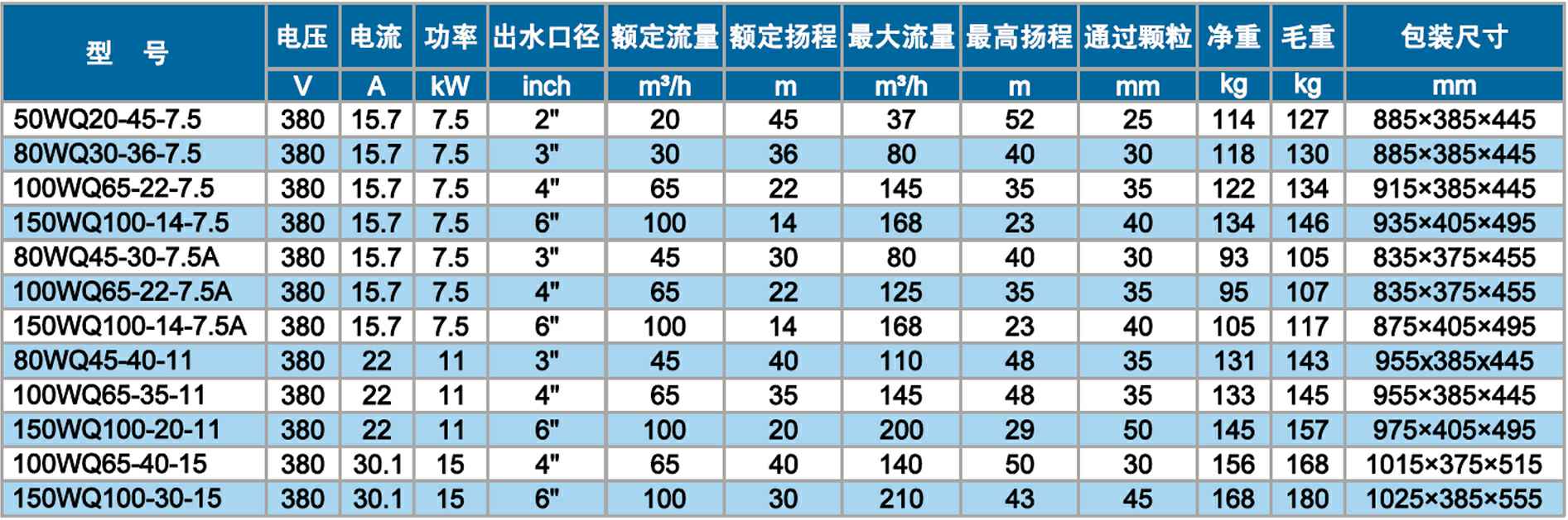 WQ系列双流道潜水排污泵结合了国内外同类优秀产品,经过PCAD软件优化设计而成,在水力模型、结构、密封、冷却和保护控制等方面进行了综合优化和创新设计。叶轮为双流道设计,有较大的进口和出口宽度,无堵塞性能好,高效节能,安全可靠,寿命长。