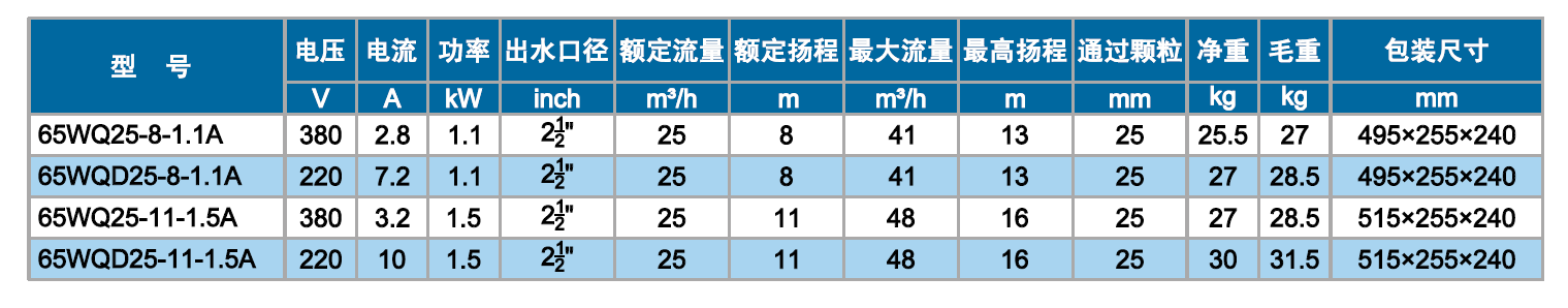 WQ系列双流道潜水排污泵结合了国内外同类优秀产品,经过PCAD软件优化设计而成,在水力模型、结构、密封、冷却和保护控制等方面进行了综合优化和创新设计。叶轮为双流道设计,有较大的进口和出口宽度,无堵塞性能好,高效节能,安全可靠,寿命长。